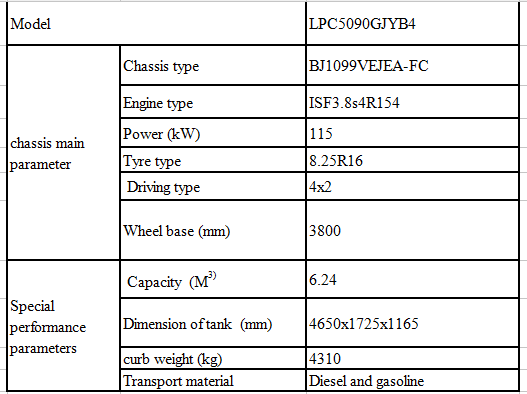 | 罐體外形尺寸(mm) | 4650x1725x1165 | |