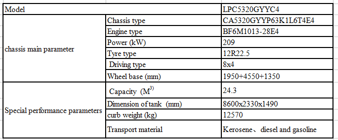 底盤主要性能參數(shù) | 底盤型號 | CA5320GYYP63K1L6T4E4 | |